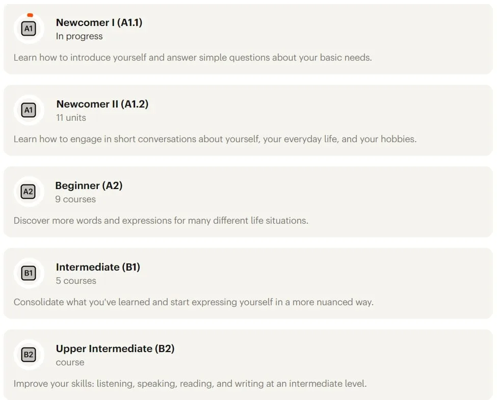 When navigating by level, you start with basic lessons. The design here is straightforward and organized, which can be particularly helpful for beginners.