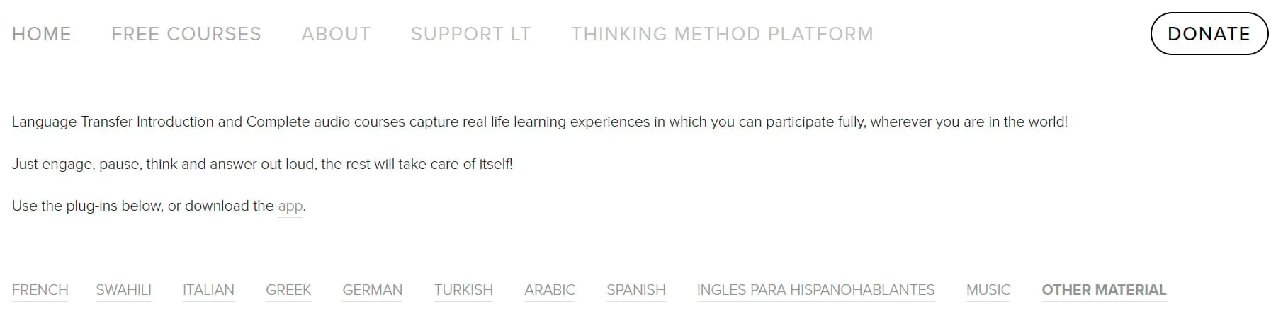 As I navigated through the Language Transfer website, I found it to be straightforward and user-friendly. The platform's mission is clear: provide language education for free, supported by donations from generous users.