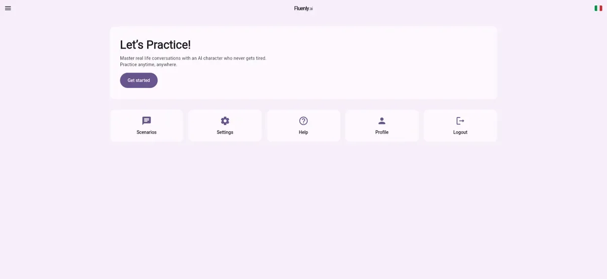 لذا، أولاً وقبل كل شيء، Fluenly هي أداة تعتمد على المتصفح وتركز بالكامل تقريبًا على ممارسة المحادثة. إنه ليس تطبيقًا تعليميًا تقليديًا يحتوي على دروس أو شروحات نحوية. بدلا من ذلك، فإنه يسقطك مباشرة في التحدث.