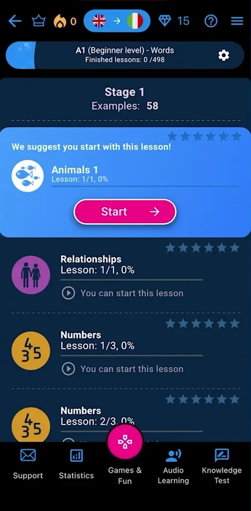 شيء آخر هو أن المحتوى ينتهي مبكرًا جدًا. تظل العديد من اللغات - بما في ذلك اللغة الإيطالية - في الغالب في مستوى المبتدئين. يمكنك بالتأكيد تعلم العبارات الأساسية والمفردات الأساسية، ولكن إذا كان هدفك هو تجاوز A1 أو A2، فسوف تصطدم في النهاية بحائط.