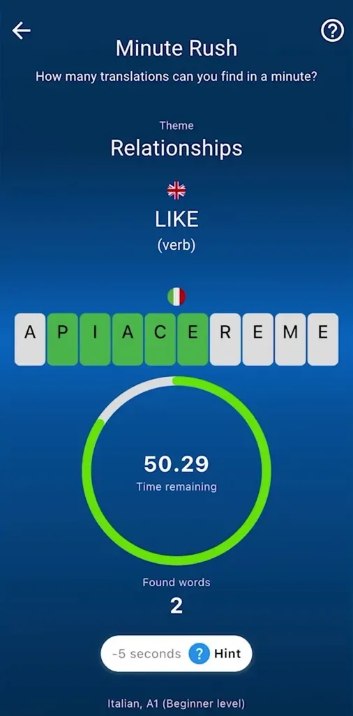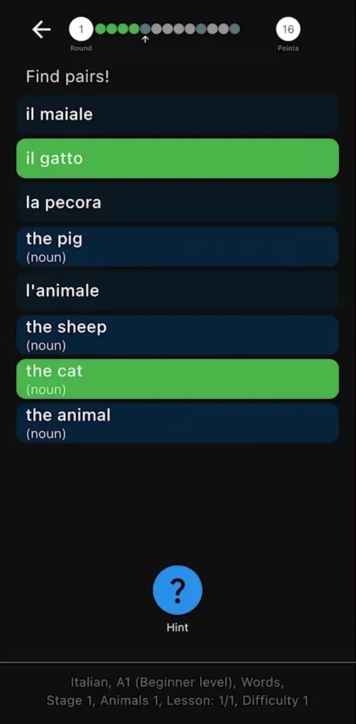 يقدم التطبيق أيضًا تلميحات لطيفة عندما لا أتذكر كلمة واحدة، وأعجبني أنه لم يتم إعطائي الإجابة على الفور. لقد جعل من السهل الاستمرار في التركيز دون الشعور بالإحباط.