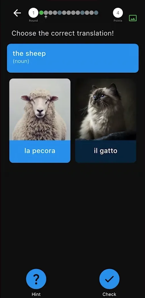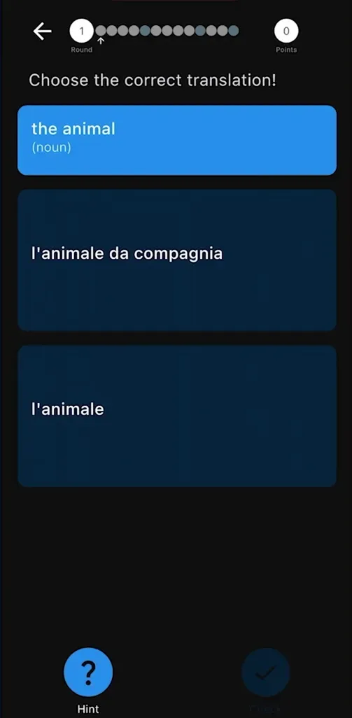 الشيء الذي أقدره حقًا هو أن Qlango يجعلك تجيب باللغة الإيطالية فقط. لا يوجد انتقال ذهابًا وإيابًا بين اللغات، مما يدفعك إلى نسخة خفيفة من الانغماس على الفور.