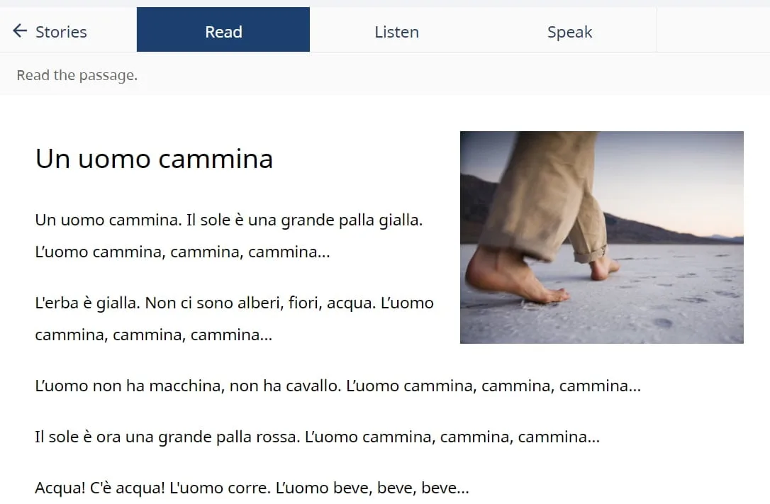 Sie können Geschichten lesen und anhören, die auf die Einheit, die Sie studieren, zugeschnitten sind. Wenn Sie sich beispielsweise in Einheit eins befinden, haben Sie Zugriff auf fünf Stockwerke. Diese Funktion ermöglicht interaktives Üben, bei dem Sie auch Ihre Aussprache aufzeichnen und Feedback dazu erhalten können.