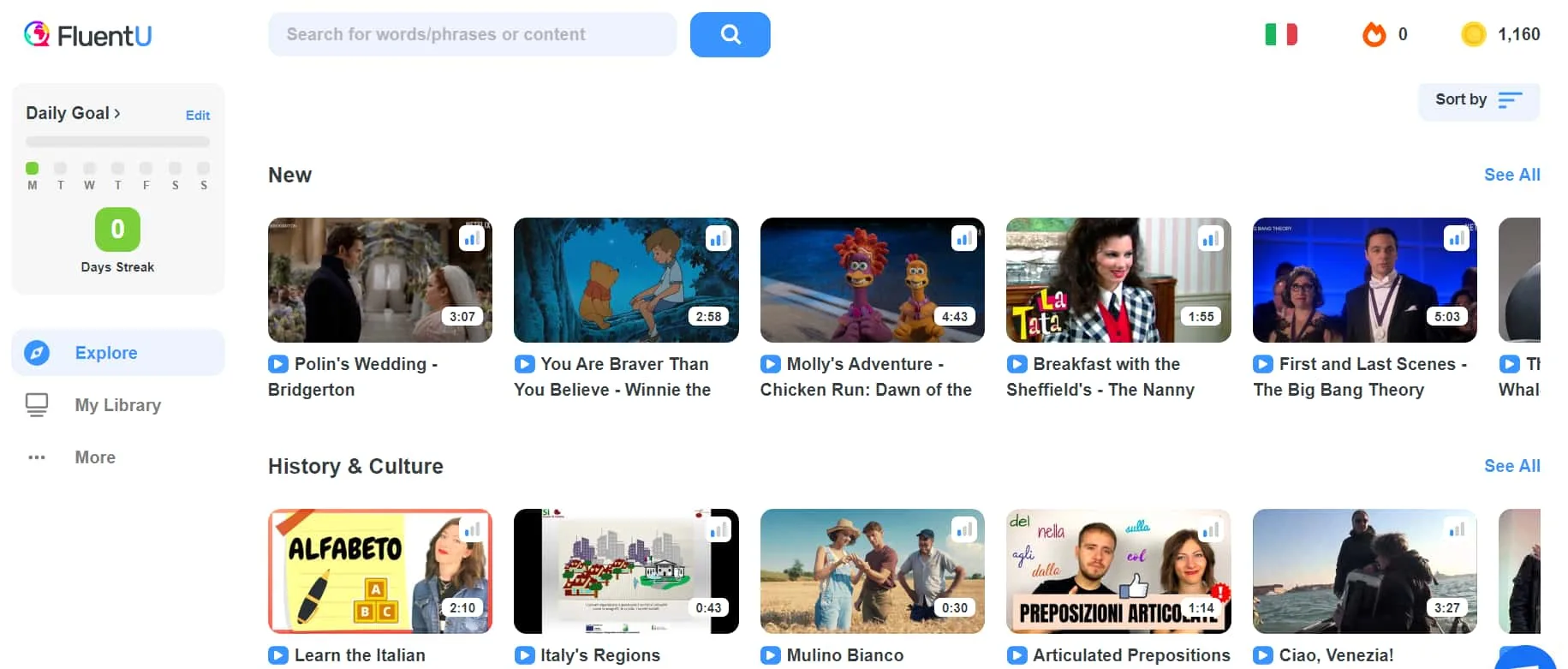 - FluentU ofrece aprendizaje de idiomas a través de contenido de video como videos musicales, avances de películas, noticias y charlas inspiradoras.