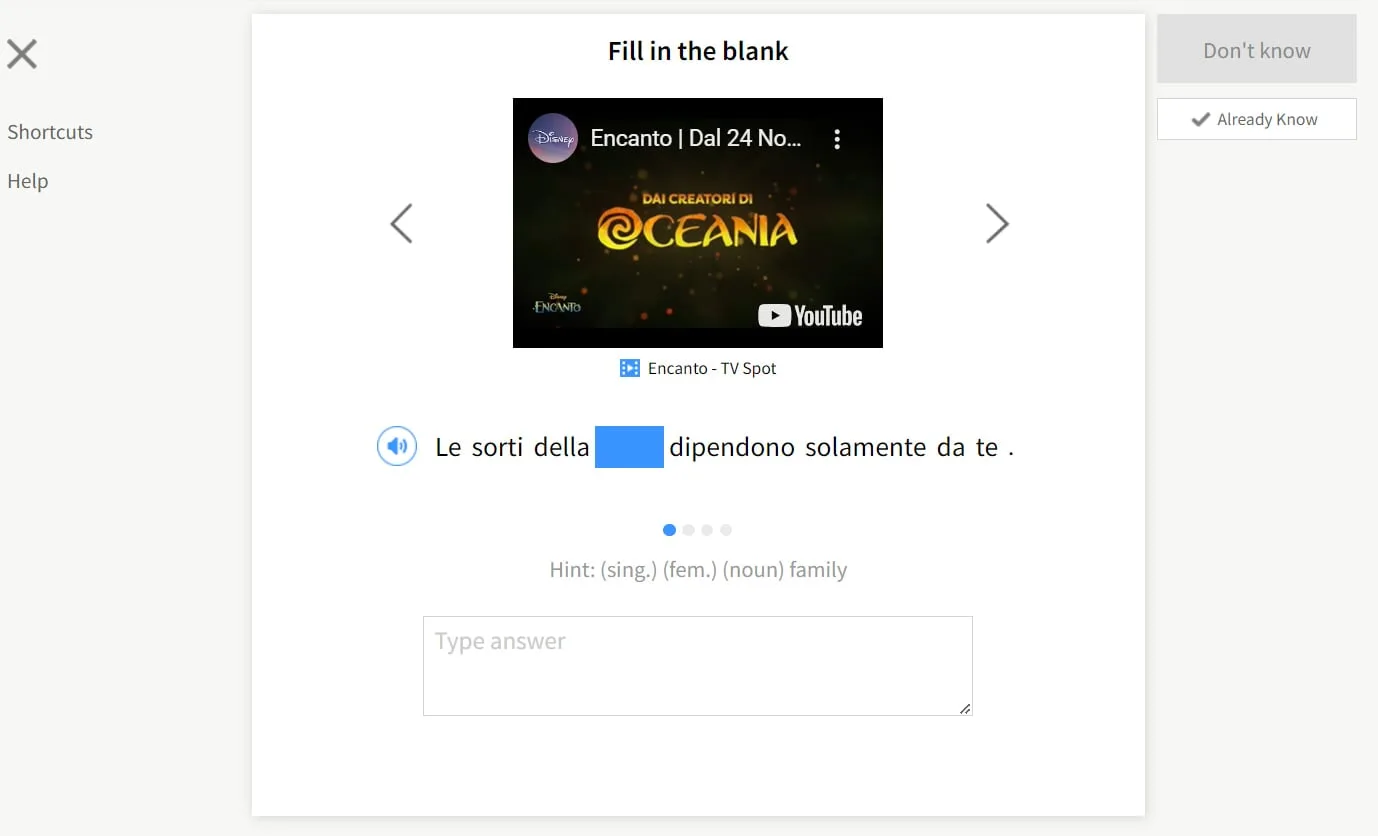 FluentU es esencialmente una videoteca. Proporciona varios ejercicios basados en el contenido de los videos y está diseñado para ayudarte a practicar tus habilidades de escucha y comprensión. La plataforma ofrece ejercicios basados en estos vídeos, pero notablemente carece de actividades de conversación.