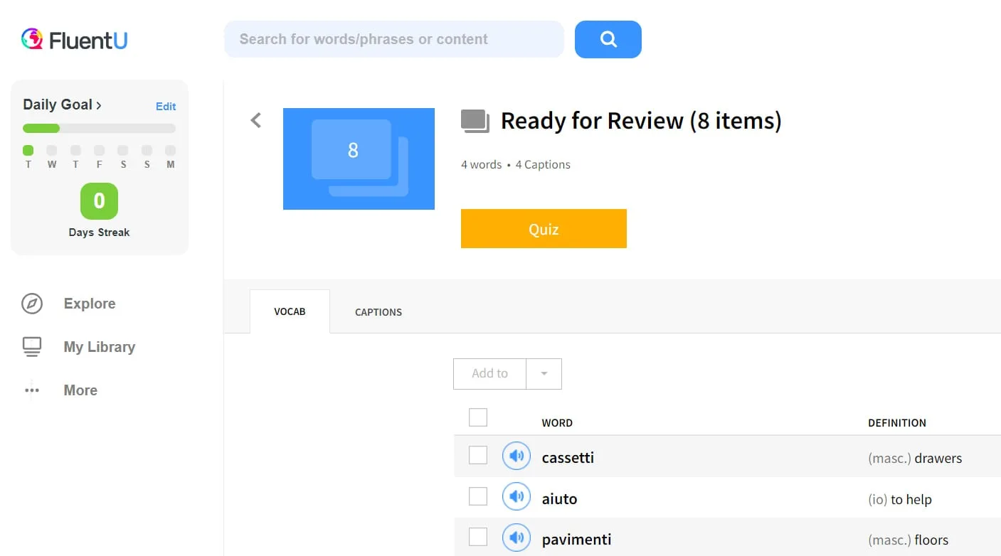 Si bien FluentU es una herramienta valiosa para practicar la escucha y la comprensión, no espere que le proporcione fluidez por sí sola. No ayuda a los usuarios a desarrollar habilidades para hablar, lo que considero esencial para aprender un idioma.