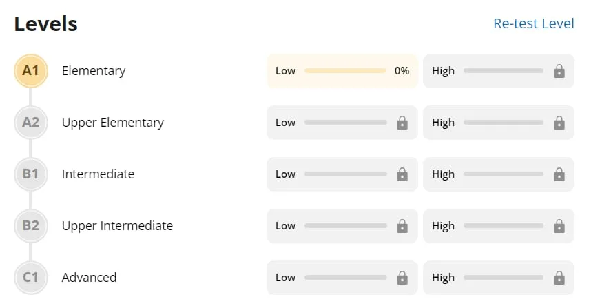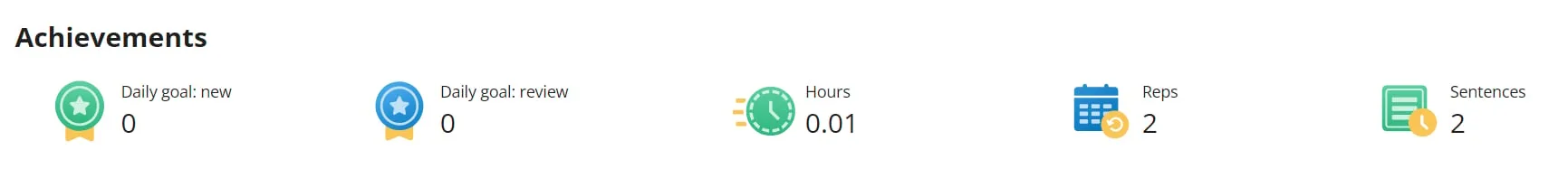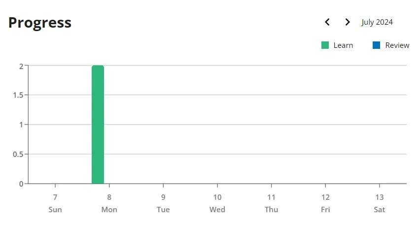 Esta configuración brinda una representación visual clara de los logros, pero puede parecer básica en comparación con aplicaciones de idiomas más interactivas.
