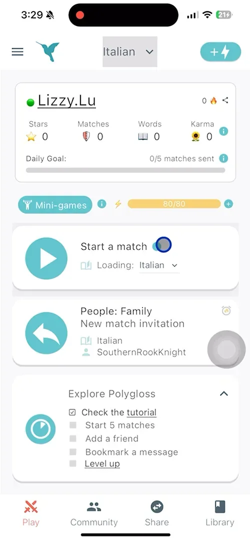 En general, creo que Polygloss es una forma divertida de practicar la escritura italiana en un entorno creativo y de baja presión. Es gratis probarlo, con funciones opcionales de pago, y definitivamente puede mantenerte motivado para usar el italiano de manera más activa.