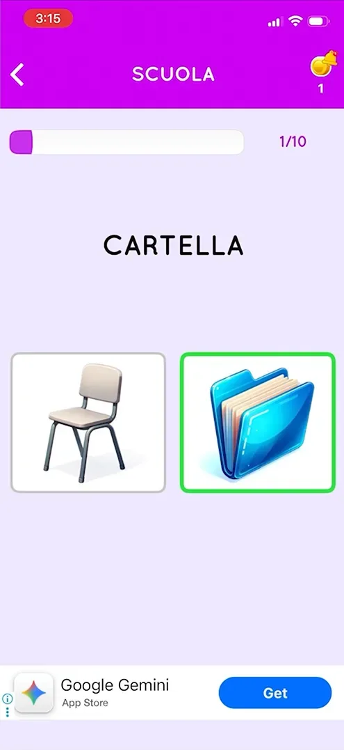 L'objectif principal de Gonliapps pour l'italien est l'apprentissage du vocabulaire.