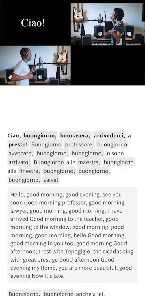 SpeakTwice은 이탈리아어를 항상 말하게 만드는 유일한 앱입니다. 수백 개의 문법 강의와 듣고 따라 할 수 있는 읽기 자료, 그리고 강의를 복습하고 대화를 연습할 수 있는 AI 튜터가 포함되어 있습니다. 전체 리뷰를 확인하세요.