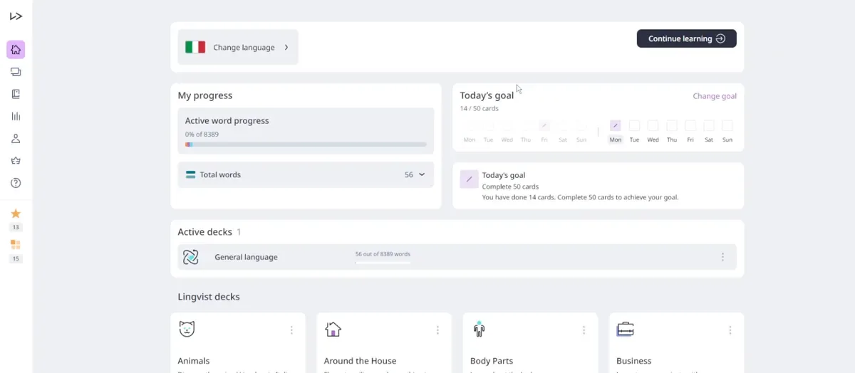 Dito isso, se seu objetivo é construir rapidamente seu vocabulário de italiano, definitivamente vale a pena tentar Lingvist - especialmente com o teste gratuito de 14 dias.