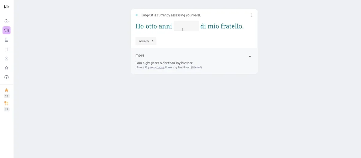 Quando você começa, o Lingvist oferece um teste de nivelamento – o que é bom se você já sabe um pouco de italiano.