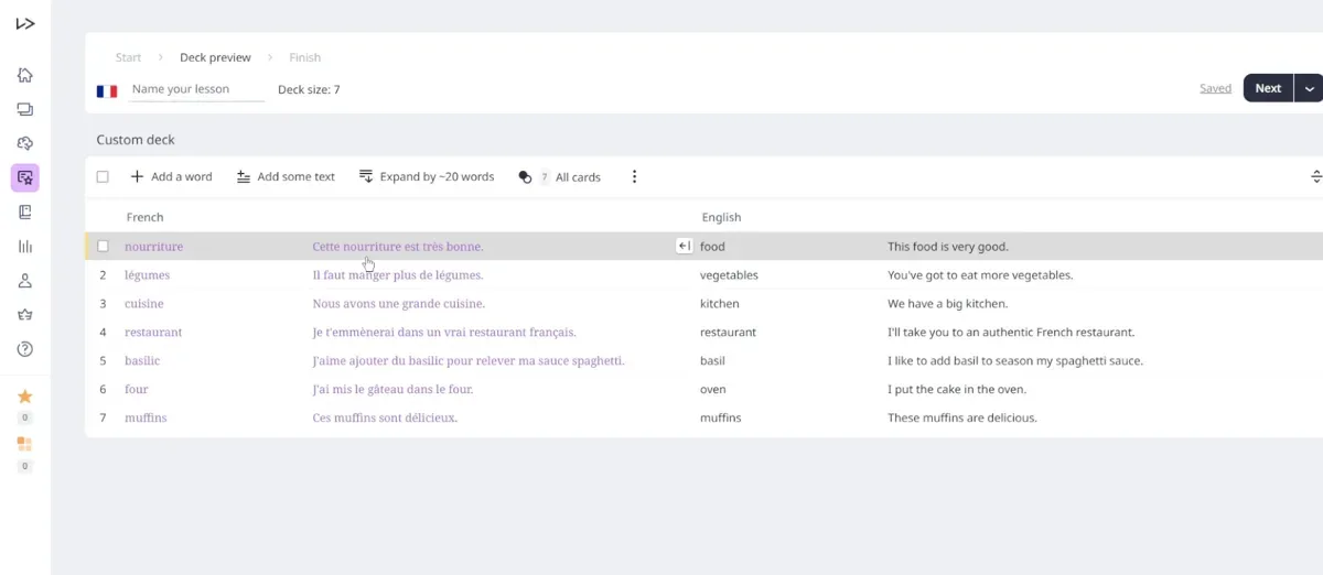 Ele permite que você crie suas próprias listas de vocabulário e, em alguns casos, você pode até colar um texto e o Lingvist irá gerar uma lista de palavras relevantes.