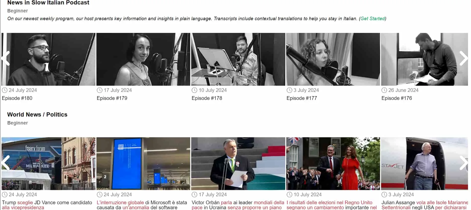 News in Slow Italian clasifică lecțiile în diferite niveluri, cum ar fi începător, intermediar și avansat.