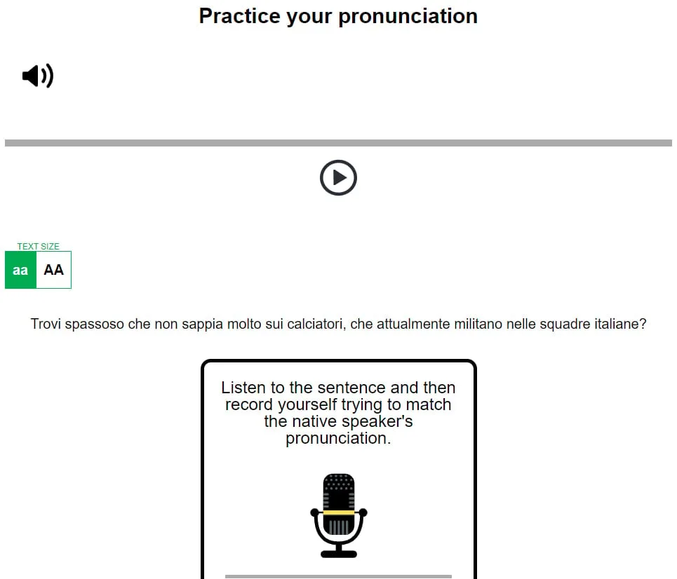 SpeakTwice este singura aplicație care vă face să vorbiți italiană tot timpul. Vine cu sute de lecții de gramatică și lecturi de ascultat și repetat, plus un tutor AI pentru a revizui cursurile și a exersa conversația. Vezi recenzia completă.