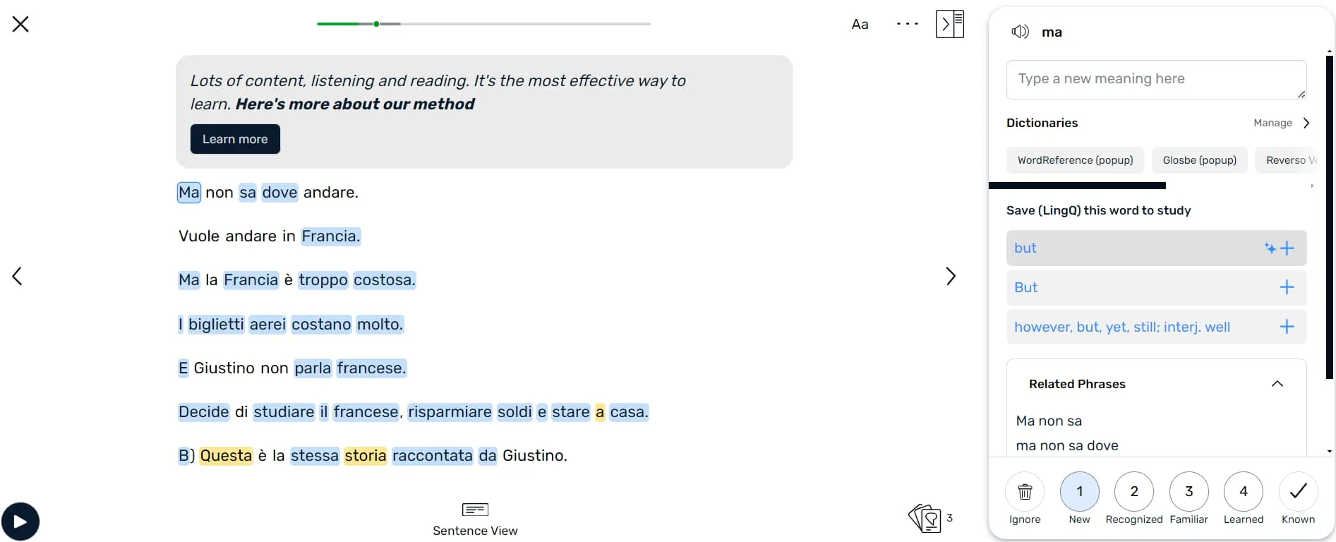 Существенным недостатком, который я обнаружил, является отсутствие разговорной практики на основных уроках. Хотя LingQ предоставляет множество упражнений на чтение и аудирование, существует заметный пробел, когда дело доходит до [разговорной практики] (https://www.thinkinitalian.com/speaking-practice-redefined-talk/).