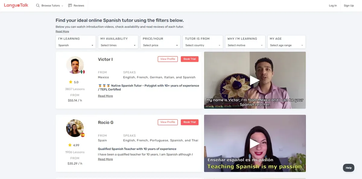 你可以预约与意大利语母语导师的一对一视频通话。他们大多数都提供免费或折扣试听课,这让试水更容易。我很喜欢可以按价格、可预约时间,甚至教学风格来筛选导师。